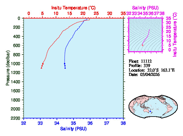 Temperature & Salinity Profiles for Float 11112