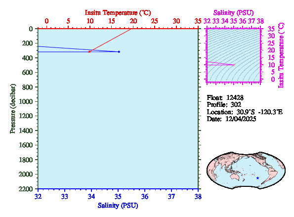 Temperature & Salinity Profiles for Float 12428