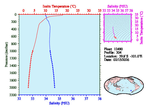 Temperature & Salinity Profiles for Float 12490