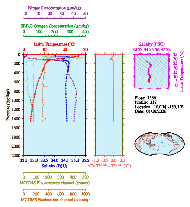 Temperature & Salinity Profiles for Float 1366
