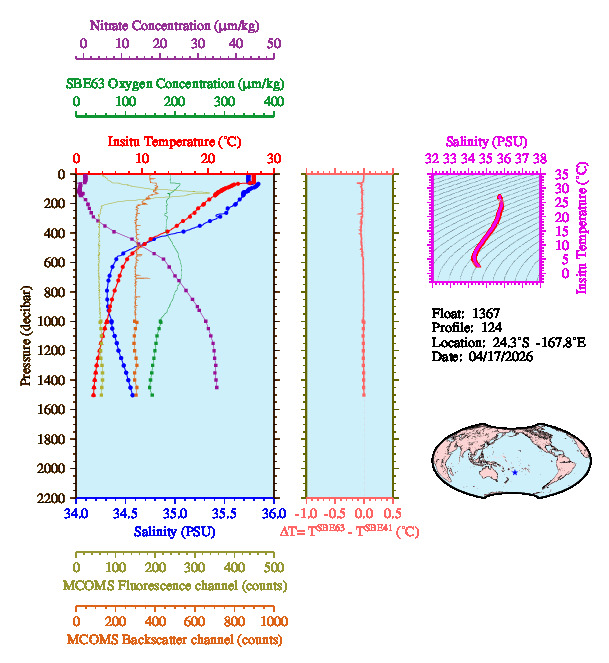 Temperature & Salinity Profiles for Float 1367