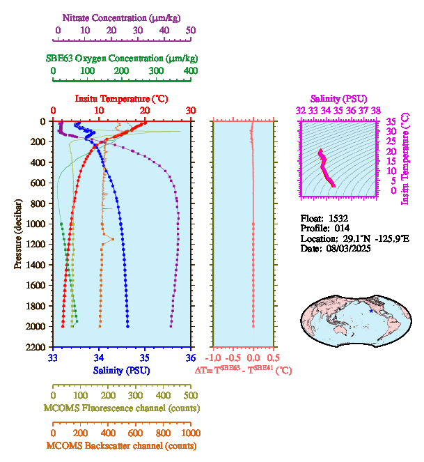 Temperature & Salinity Profiles for Float 1532
