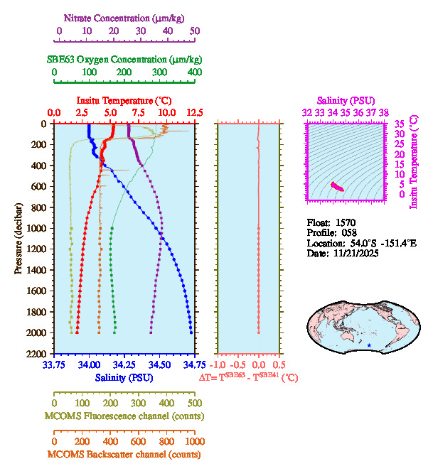 Temperature & Salinity Profiles for Float 1570