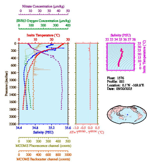 Temperature & Salinity Profiles for Float 1576