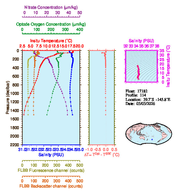 Temperature & Salinity Profiles for Float 17182