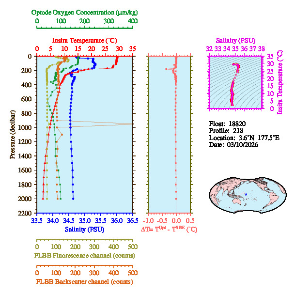 Temperature & Salinity Profiles for Float 18820