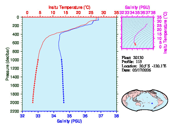Temperature & Salinity Profiles for Float 20130