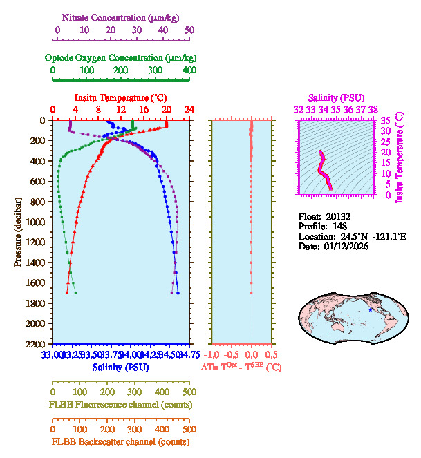 Temperature & Salinity Profiles for Float 20132