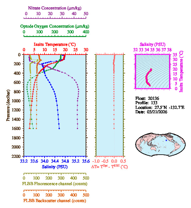 Temperature & Salinity Profiles for Float 20136