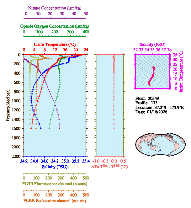 Temperature & Salinity Profiles for Float 20549