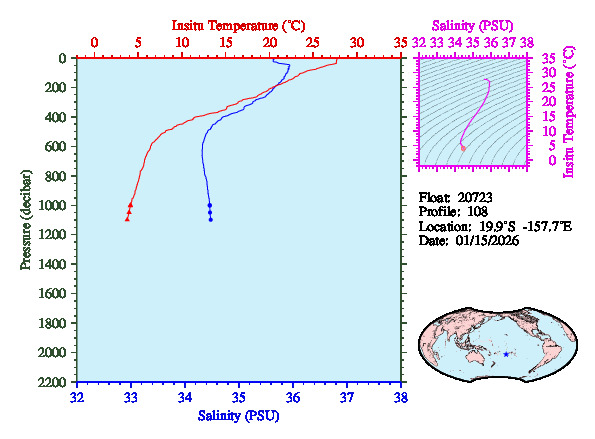 Temperature & Salinity Profiles for Float 20723