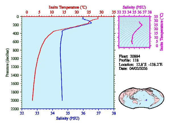 Temperature & Salinity Profiles for Float 20884