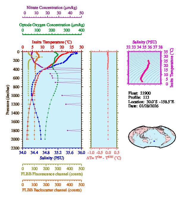Temperature & Salinity Profiles for Float 21900