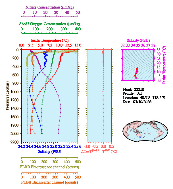 Temperature & Salinity Profiles for Float 22210