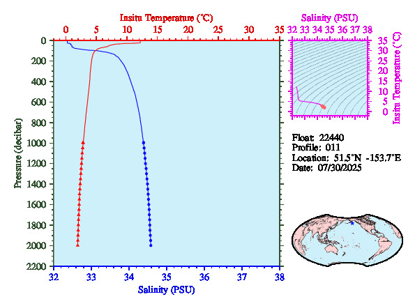 Temperature & Salinity Profiles for Float 22440