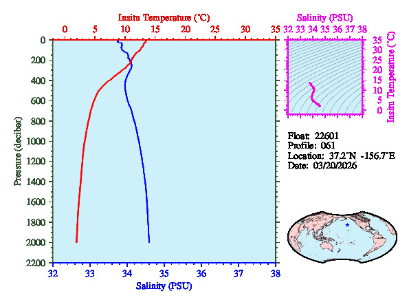 Temperature & Salinity Profiles for Float 22601