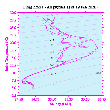 Temperature & Salinity Profiles for Float 22621