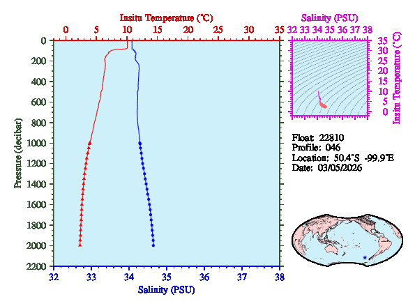 Temperature & Salinity Profiles for Float 22810