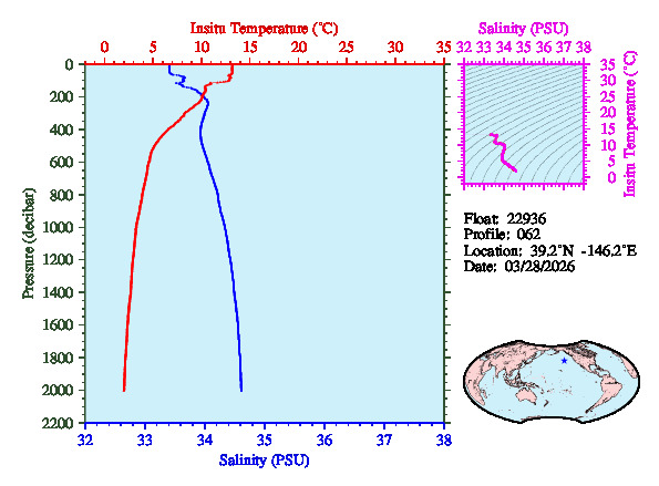 Temperature & Salinity Profiles for Float 22936