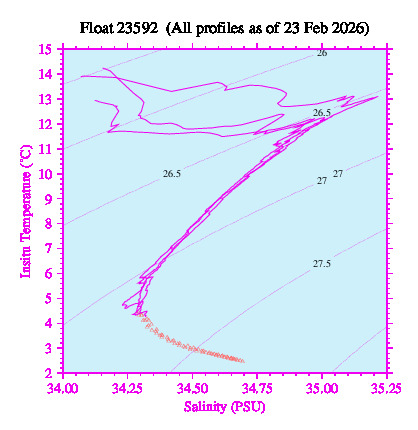 Temperature & Salinity Profiles for Float 23592