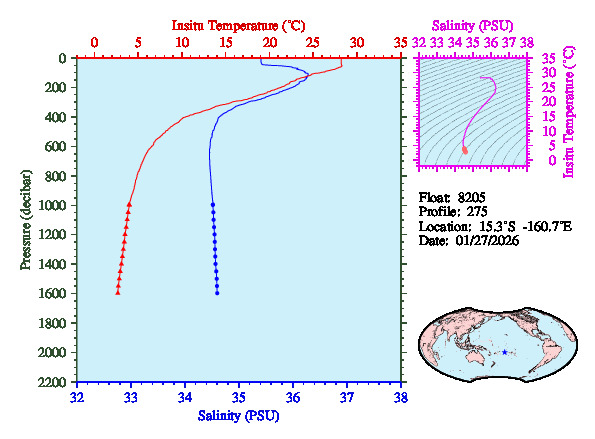 Temperature & Salinity Profiles for Float 8205