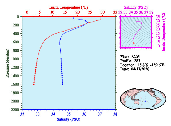 Temperature & Salinity Profiles for Float 8205